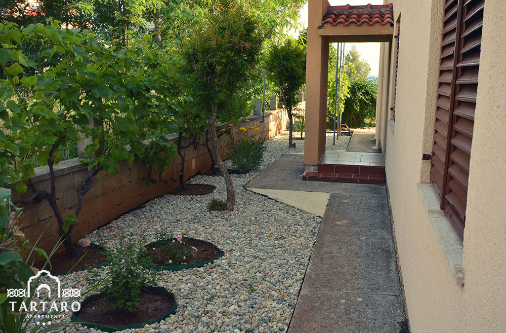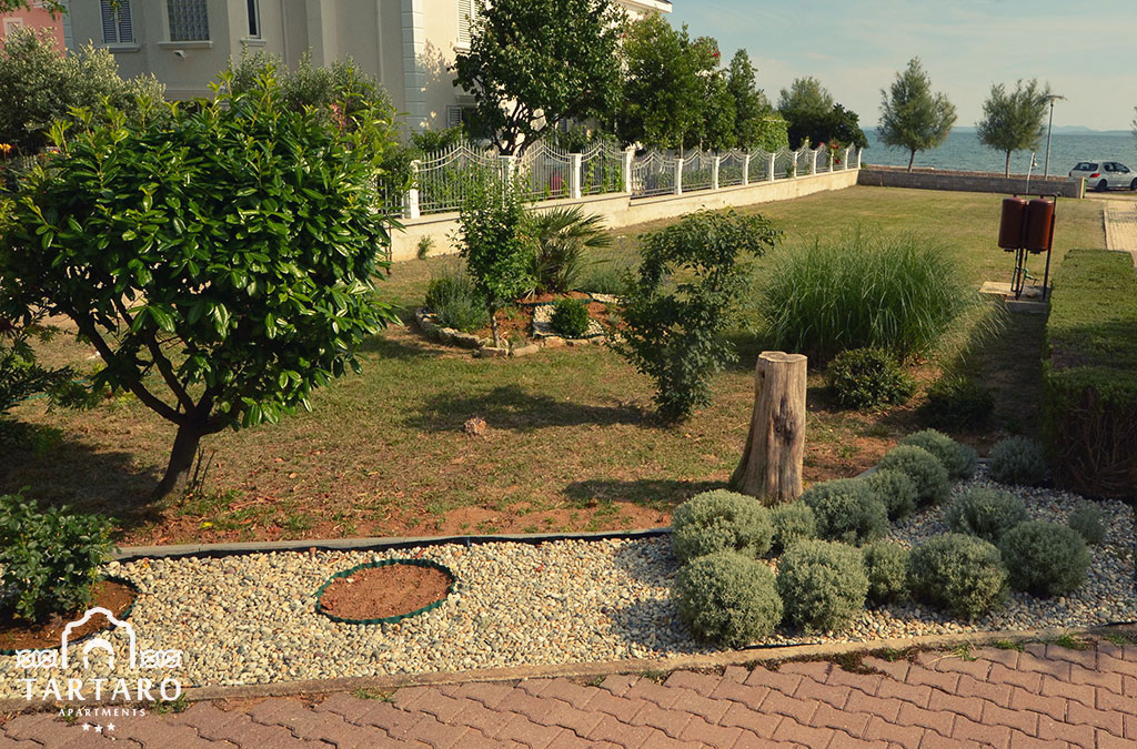 Jedna od prednosti je zasigurno i veliki vrt iz kojeg se izlazi na more. Tu započinje i šetnica koja vodi sve do centra mjesta, a koristi se i kao biciklistička staza.
